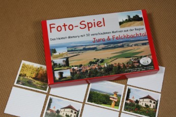 Foto-Puzzle Das ist echter Puzzle-Spaß! Teil für Teil zusammengesetzt erscheint Ihr Lieblingsmotiv in einem neuen Licht. Verschenken Sie Foto-Puzzles an Freunde und Sie werden sehen: Klassiker sind doch am Besten. Puzzle klein (Winterbild, 20 x 30 cm, 112 Teile): Euro: 10,50 Puzzle groß (Sommerbild, 30 x 45 cm, 266 Teile): Euro: 13,50 | | Foto-Spiel Stellen Sie Ihr Gedächtinis auf die Probe! Mit dem Heimat-Memory für die ganze Familie. - 64 Teile (je 6,6 x 4,6 cm groß) - 32 verschiedene Motive aus der Region Jura und Felchbachtal - Strapazierfähiges Material - Rückseite mit blauem Muster bedruckt - Lieferung in attraktiver Box Euro: 19,50 | | Schneekugel Lassen Sie es schneien! Die witzige Geschenkidee! Für Kinder, Sammler und Liebhaber Euro: 11,00 |